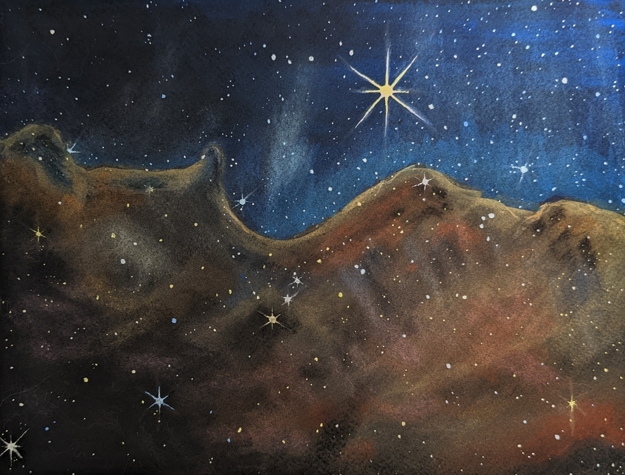 Adrienne's artistic journey traces back to her childhood, where her innate creativity found expression through various mediums. She draws her inspiration from growing up on the prairies, the scenic beauty of Vancuver Island (where she’s lived for the past 20 years), her travels and often her imagination. Where going from a memory or looking at a photo, most of her creations start with a very quick line drawing. Usually, she’ll translate a small amount of that directly onto the canvas. Beyond that, there often isn’t a big plan. Following her intuition, the painting will take shape.